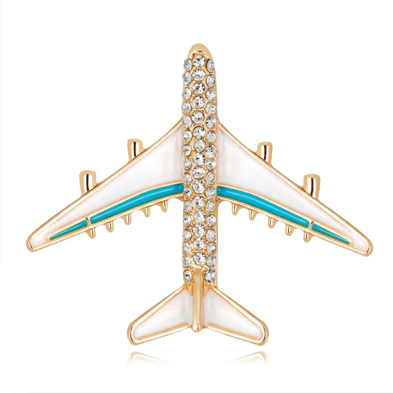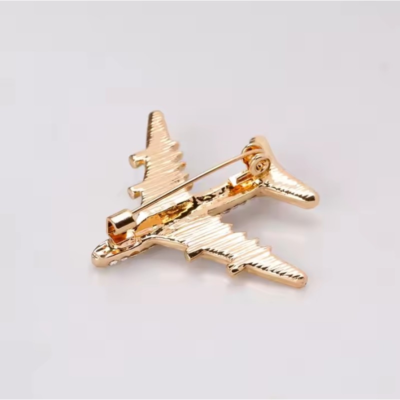 Este broche presenta una silueta estilizada de un aeroplano, convirtiéndolo en una pieza distintiva para profesionales y entusiastas de la aviación.