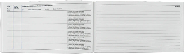 Diseñado para mantener organizados los registros completos de la aeronave: inspecciones, pruebas, reparaciones, modificaciones, directivas de aeronavegabilidad, boletines de servicio y adiciones, retiradas o sustituciones de equipos. Incluye secciones para modificaciones importantes y comprobaciones del altímetro/sistema estático.